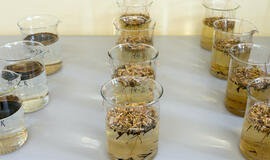 Mokslininkės kartu su projekto „InoBioTech Baltija“ komanda pastaruosius mėnesius laboratorijos sąlygomis testavo įvairias iš vandens ir smėlio išskirtas mikroorganizmų kultūras bei skirtingus natūralios kilmės sorbentus: kankorėžius, samanas, dumblius, šuns plaukus, vilną, medienos drožles ir šiaudus.