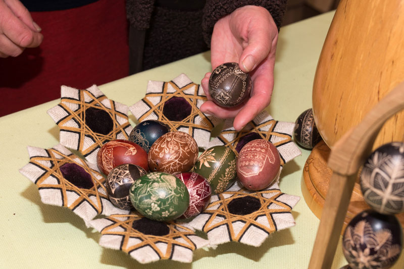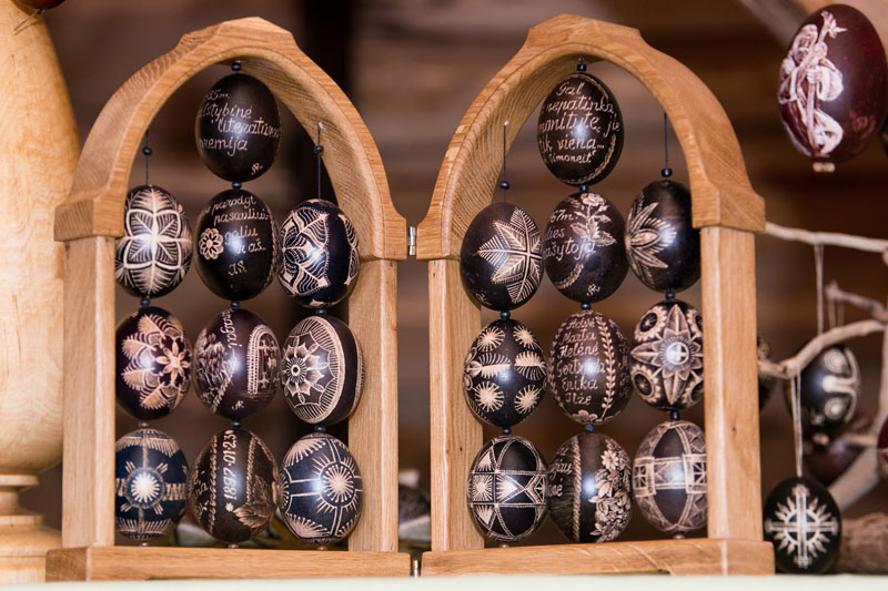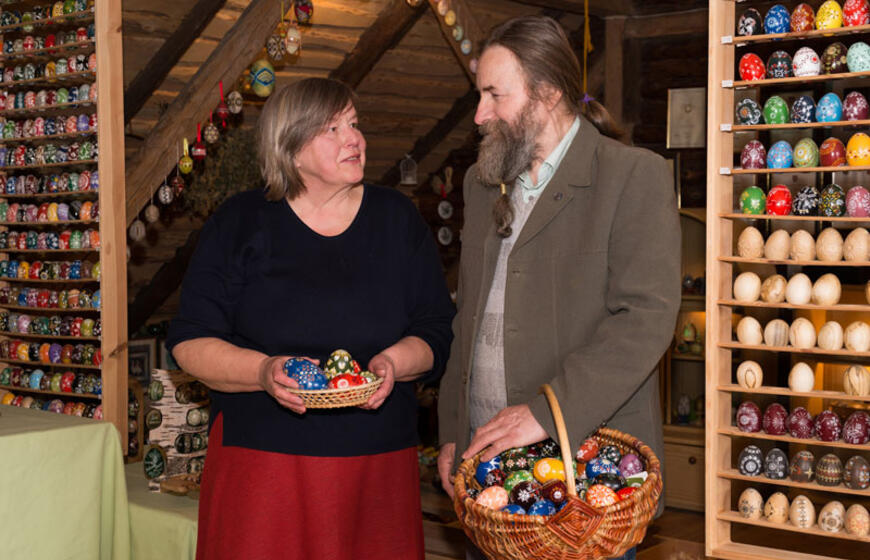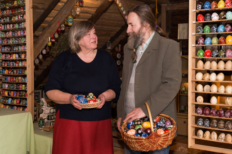 „Visi šie mano skutinėti ir vašku marginti margučiai būtų visiškas nulis, tik į geldą supilta didesnė ar mažesnė krūva kiaušinių. Prasmės, grožio ir unikalumo margučių rinkiniams suteikia Vytauto apipavidalinimas“, - giria vyrą Angelė.