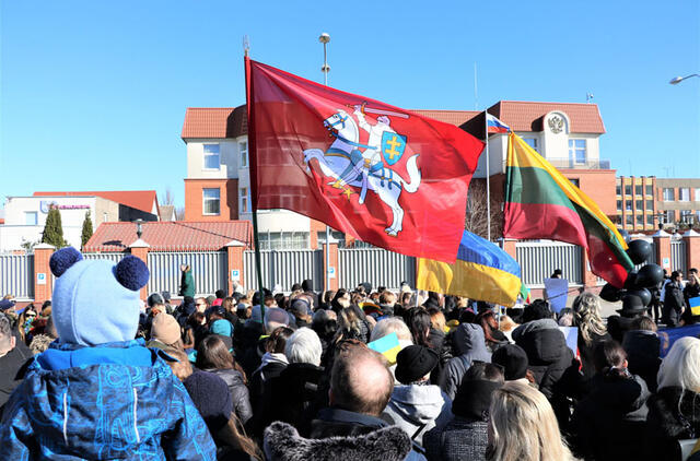 Kur kas daugiau, keli šimtai, žmonių į taikią protesto akciją prieš Rusijos agresiją prie konsulato susirinko sekmadienį.