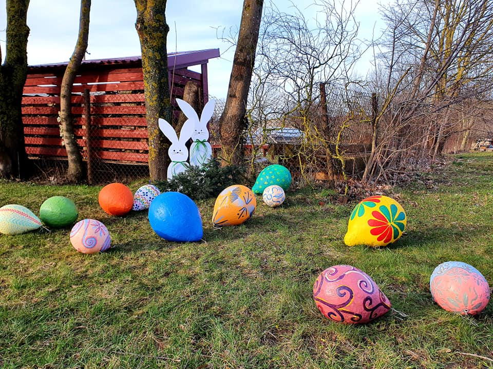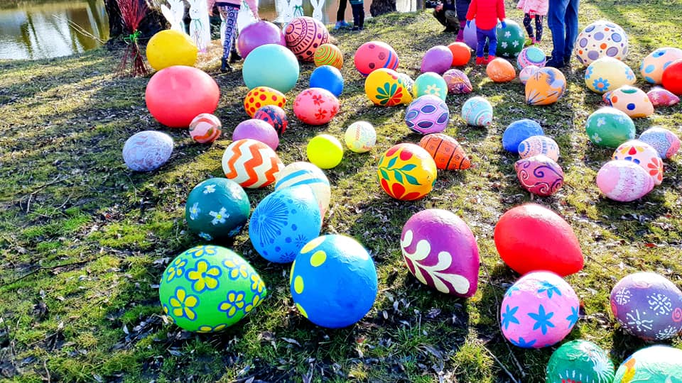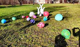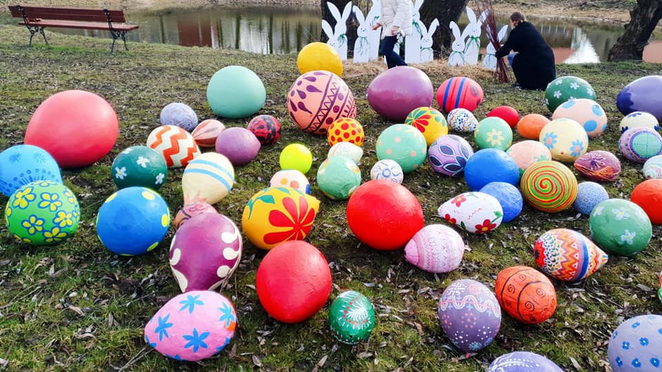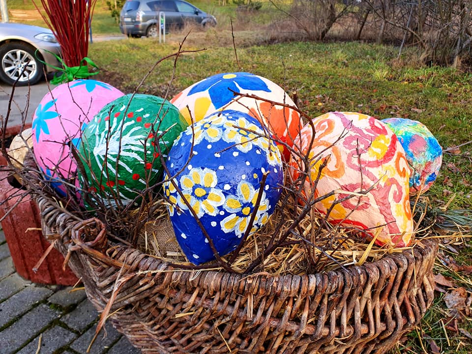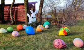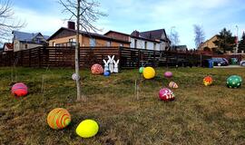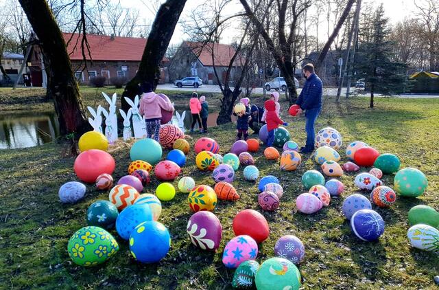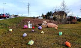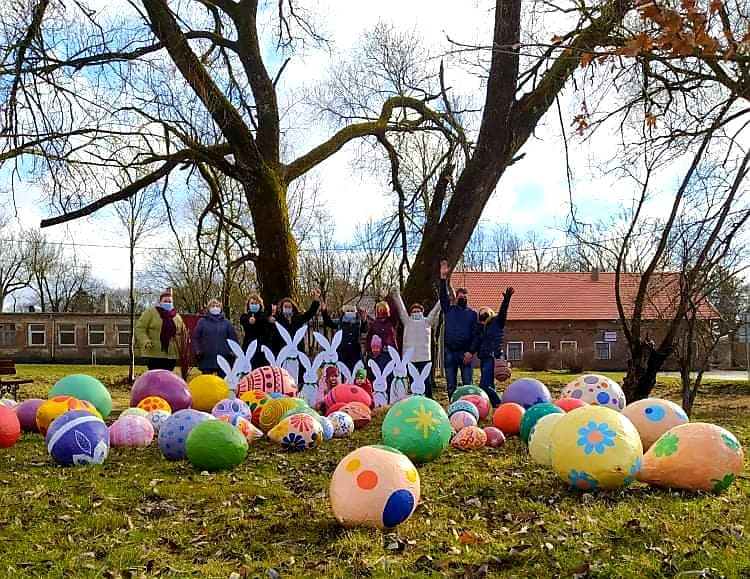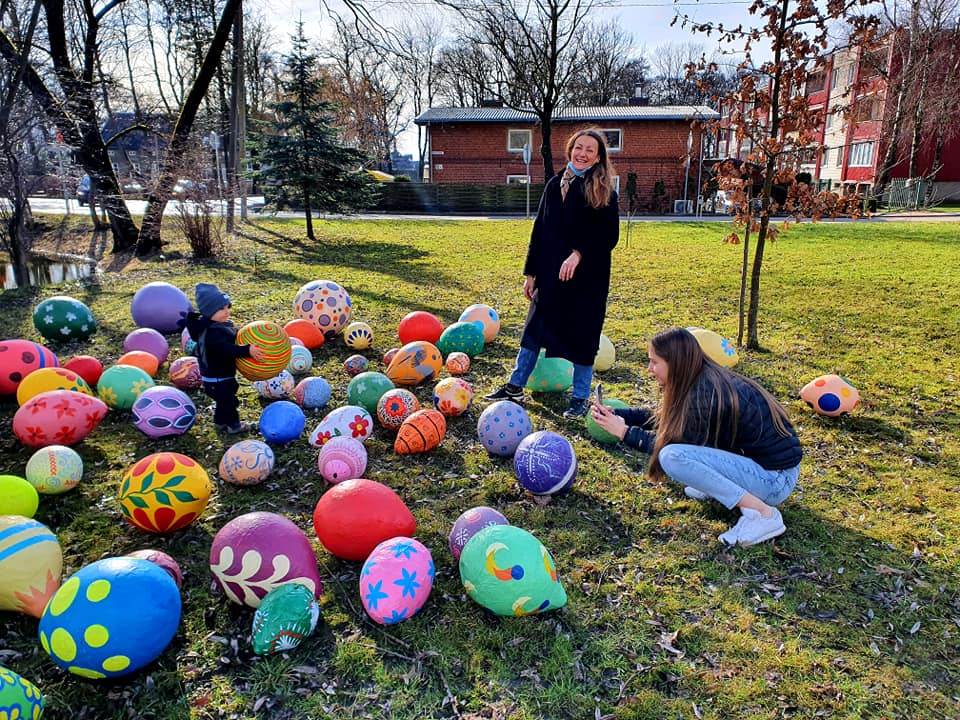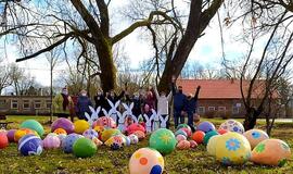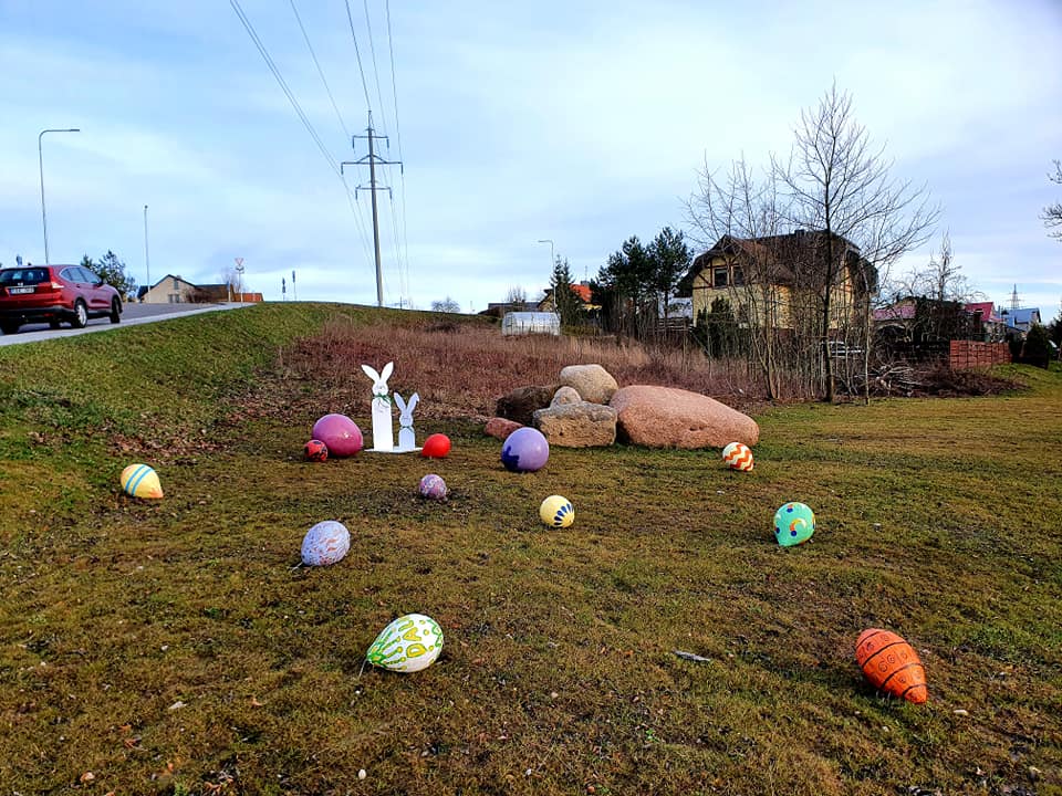 Po beveik mėnesio pasiruošimo darbų šiandien buvo išridenti velykiniai margučiai iš namų ir pasklido po visus Paupius.