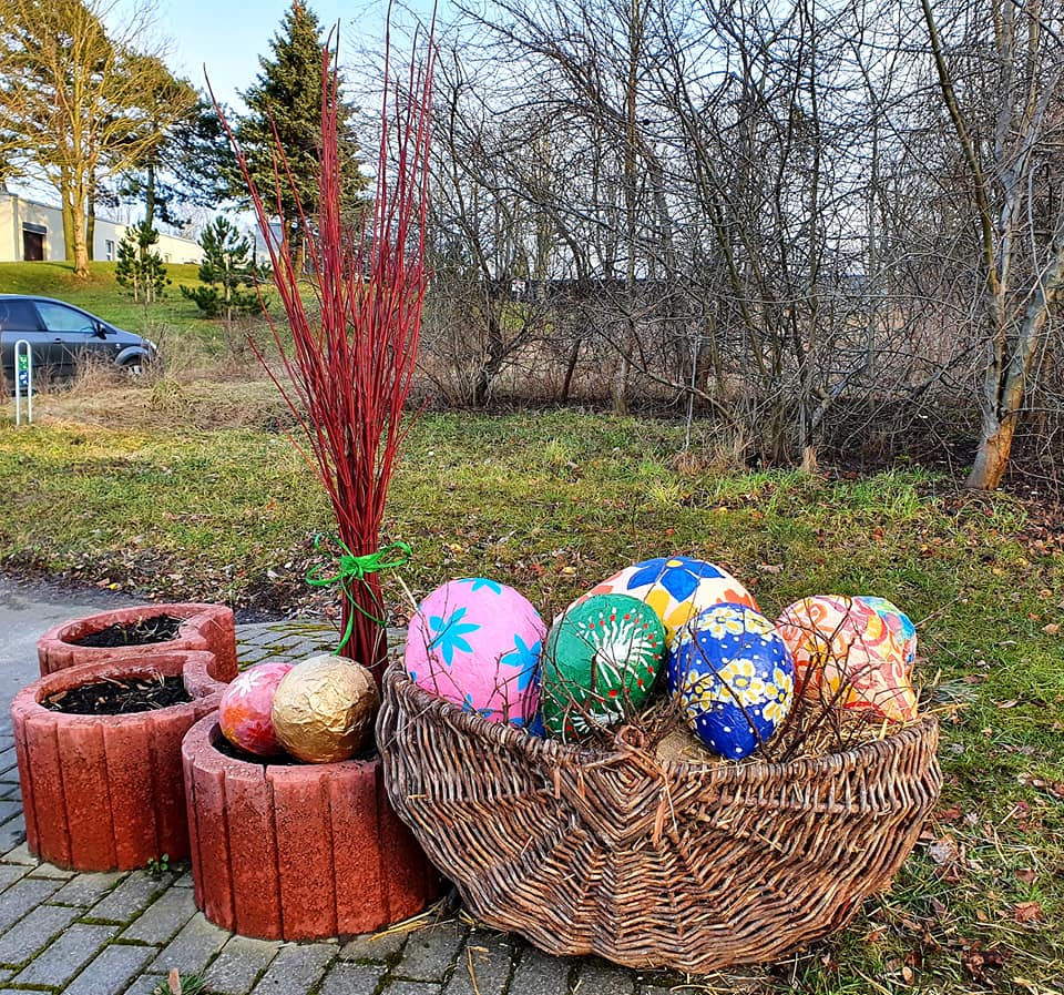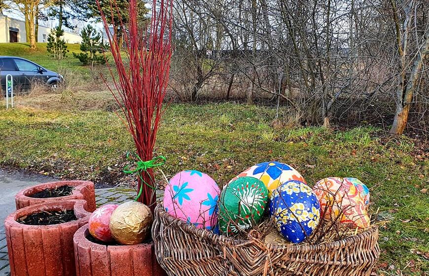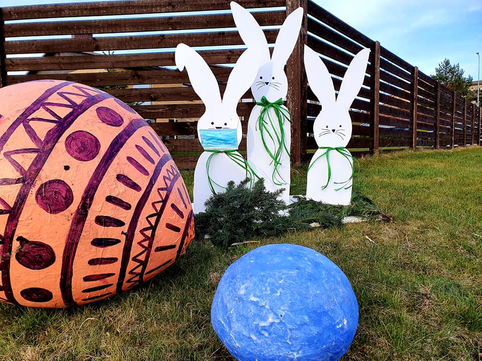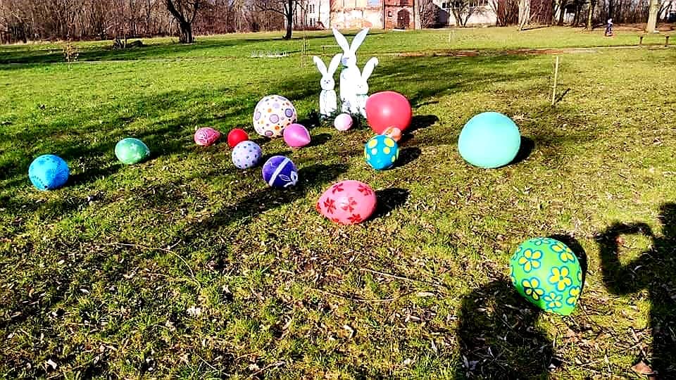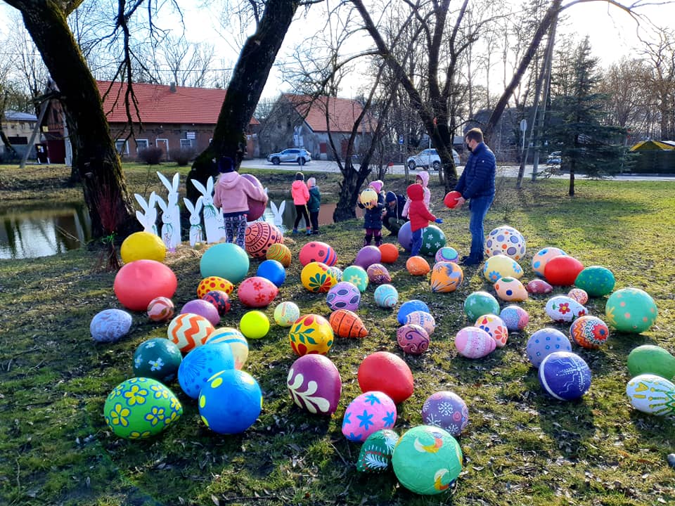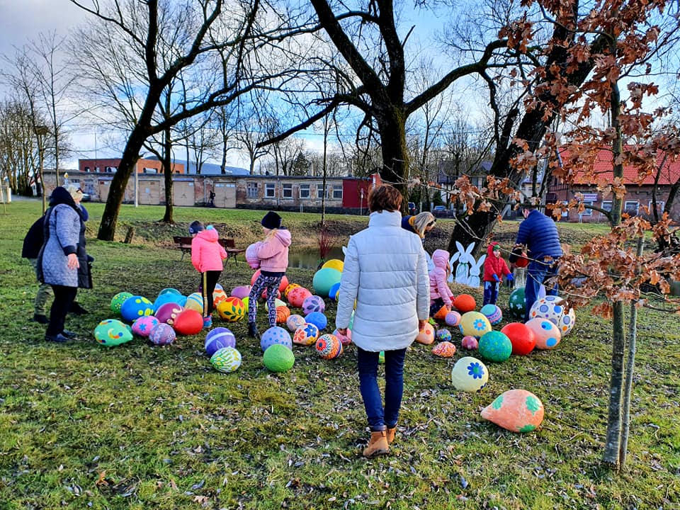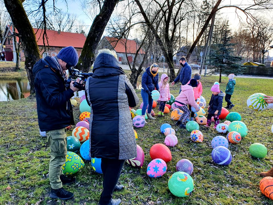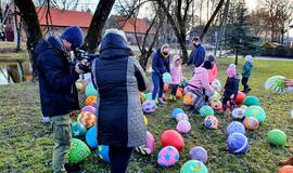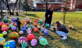Po beveik mėnesio pasiruošimo darbų šiandien buvo išridenti velykiniai margučiai iš namų ir pasklido po visus Paupius.