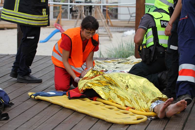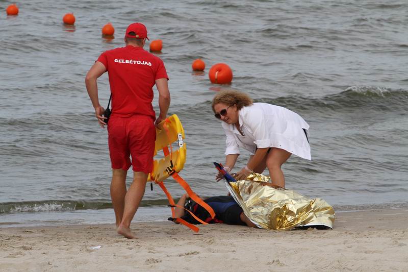 „Pramoginis laivas, jachta, kurioje plaukiojo 4 žmonės, apsivertė kažkur 300-400 metrų nuo kranto. Klaipėdos pajūrio gelbėtojai ištraukė du žmones, mes, kaip priešgaisrinė gelbėjimo tarnyba, ištraukėme vieną ir karinių oro pajėgų straigtasparnis taip pat iš jūros partempė vieną žmogų“, – mokymų eigą komentavo Klaipėdos priešgaisrinės gelbėjimo valdybos viršininkas Marius Garbenis.