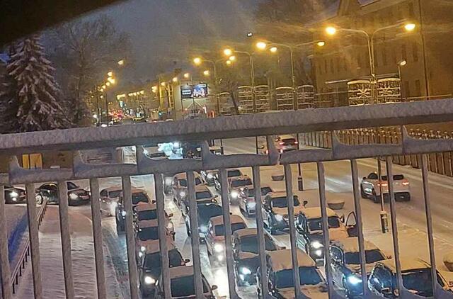Vakare miesto gatvėse susiformavo milžiniškos transporto spūstys.