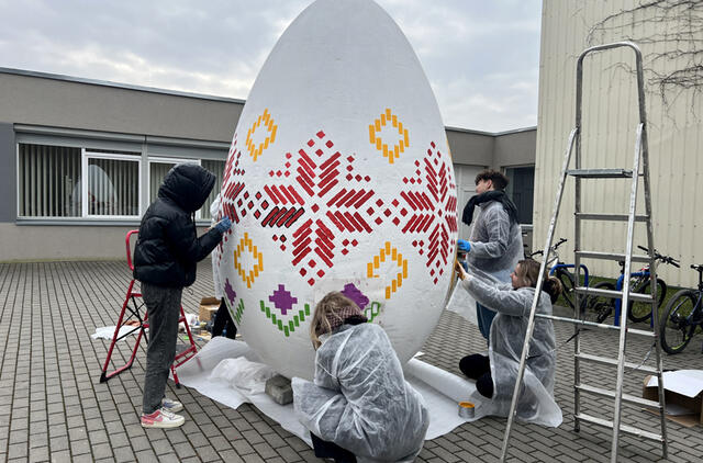 Trijų metrų aukščio ir pusantro metro pločio Velykų simbolį marginti šiemet patikėta Klaipėdos Baltijos gimnazijos moksleiviams.