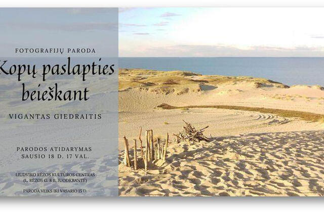 Smėlis - visagalis nerijos valdovas ir buities lėmėjas.„ (T.Sakalauskas “Čakona" p. 174, 1994 m.). Tik čia, vaikščiodamas tarp šių smėlio kalnų, pajunti gamtos didybę, kiekvienos akimirkos svarbą ir paslaptį... Sukako 20 metų, kai išskirtinis žmogaus ir gamtos kūrinys - Kuršių nerija - buvo įrašytas į UNESCO Pasaulio paveldo sąrašą kaip kultūrinio kraštovaizdžio objektas. Lietuvos Respublikos Seimas 2020-uosius paskelbė UNESCO pasaulio paveldo Lietuvoje metais. Šiai sukakčiai ir skiriu šią parodą."
