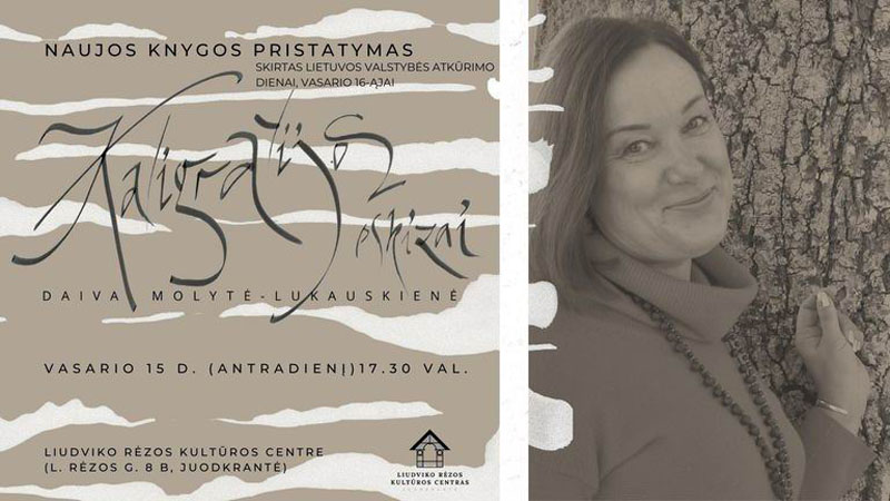 Vasario 15 d. (antradienį) 17.30 val. maloniai kviečiame į Daivos Molytės-Lukauskienės naujos knygos „Kaligrafijos eskizai“ pristatymą, skirtą Lietuvos valstybės atkūrimo dienai. Renginys vyks Liudviko Rėzos kultūros centre (L. Rėzos g. 8B, Juodkrantė).