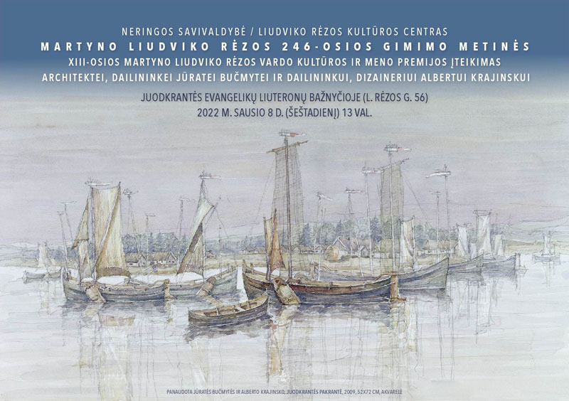 2022 m. sausio 8-ąją, minint Martyno Liudviko Rėzos 246-ąsias gimimo metines, Neringos meras Darius Jasaitis įteiks tryliktąją jo vardu pavadintą kultūros ir meno premiją, kuri šiais metais Neringos savivaldybės tarybos sprendimu yra skirta architektei, dailininkei Jūratei Bučmytei ir dailininkui, dizaineriui Albertui Krajinskui. Iškilminga įteikimo ceremonija vyks 13 val. Juodkrantės evangelikų liuteronų bažnyčioje (L. Rėzos g. 56).