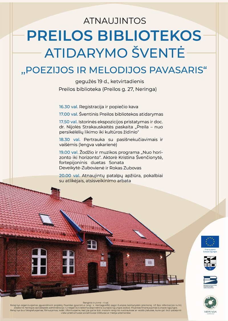 Atnaujintos Preilos bibliotekos (Preilos g. 27) atidarymo šventė „Poezijos ir melodijos pavasaris“ vyks gegužės 19 d. nuo 16.30 val.