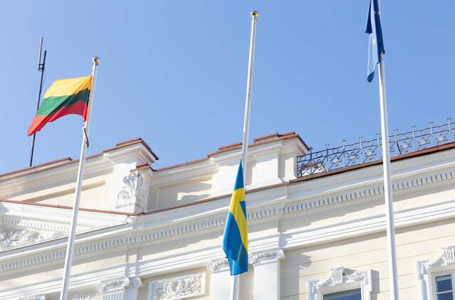 Pirmadienį prie NATO būstinės Briuselyje bus iškelta mėlynos ir aukso geltonos spalvos Švedijos vėliava.