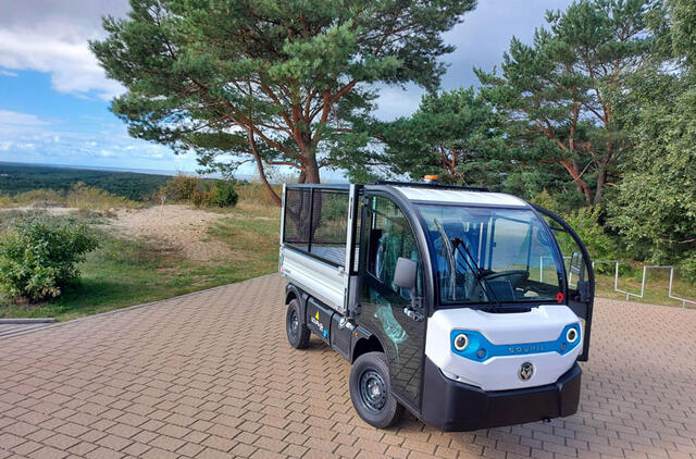Šiuo pirmuoju elektromobiliu bus atliekami želdynų priežiūros darbai.