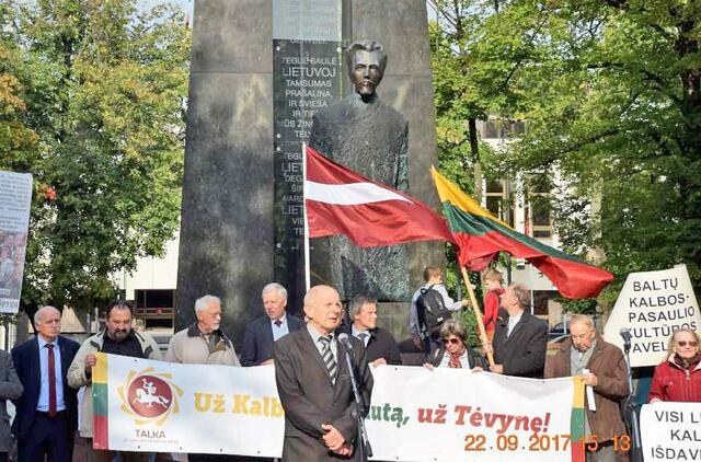 Mūsų kaimynai ir kalbos broliai latviai laukia iš mūsų solidarumo, nes geriau už mus žino, kokie pavojai kiltų, jei valstybės oficialiuose dokumentuose būtų imta rašyti pagal grėsmingos kaimynės „dokumentų šaltinius““, – sako G. Songaila.