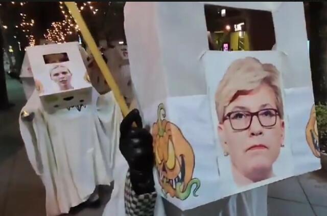 Vakare Kauno Laisvės alėjoje susirinkę aktyvistai persirengė šmėklomis pasipuošiant liūdniausiai per pastaruosius metus pagarsėjusių politikų atvaizdais.