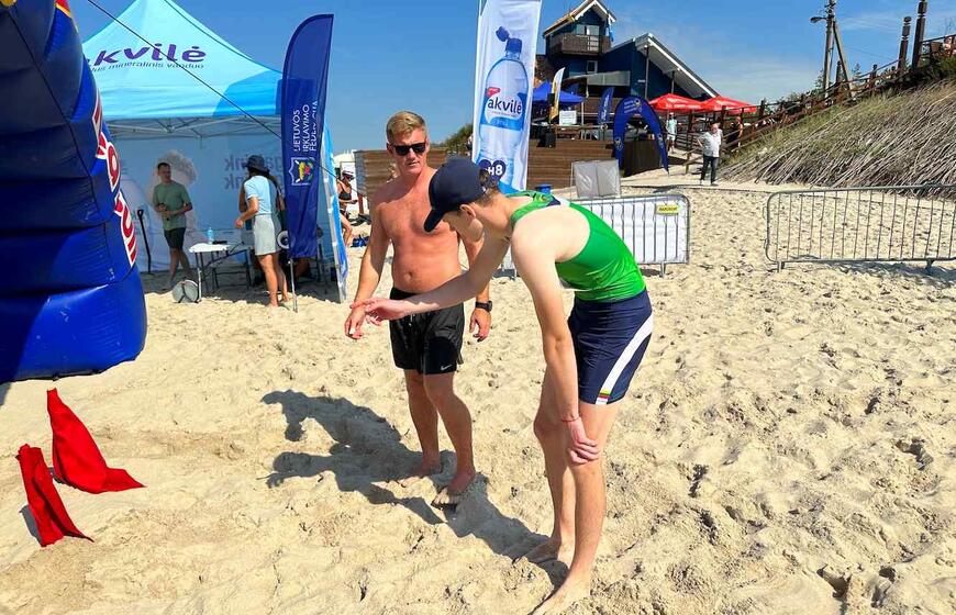 Poilsiautojų dėmesį pliaže prikaustė atletiškų vyrų ir merginų kovos