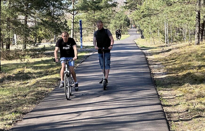 © Pauliaus MATULEVIČIAUS nuotr. NUSTEBINO. Praėjusį sekmadienį atnaujintu Smiltynės dviračių taku važinėjosi masė poilsiautojų. Jie teigė, kad šiemet šia atkarpa važiuoja pirmą kartą, ir liko maloniai nustebinti.
