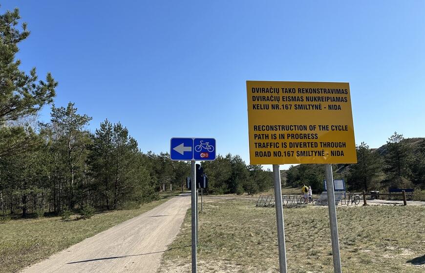 © Pauliaus MATULEVIČIAUS nuotr. UŽDARYTAS. Dviračių tako atkarpoje nuo Naujosios perkėlos iki Juodkrantės šiuo metu vyksta intensyvūs darbai. Juo važiuoti kol kas draudžiama.
