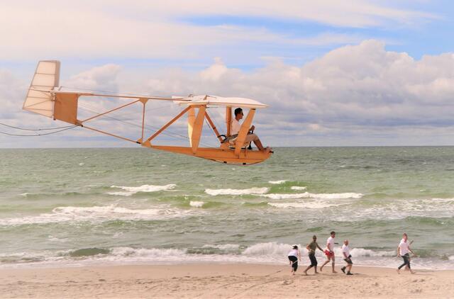 „Technikas“ kilo ir leidosi keliolika kartų, ir po kiekvieno sėkmingo pakilimo į orą bei nutūpimo paplūdimyje pasigirsdavo plojimai. Vaikai kruopščiai nuvalydavo smėlį nuo „latako“ paviršiaus ir laukdavo kito tempimo.