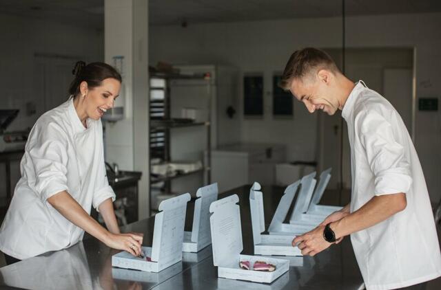 „Verslas startavo Klaipėdoje, Jaunystės gatvėje, kur nuomavomės gamybines patalpas. Jos buvo erdvios, apie 150 kvadratinių metrų. Pradžioje mūsų verslui būtų užtekę tik dalies šios kvadratūros. Per pirmąjį karantiną pavyko įsikelti į naujas nuosavas gamybines patalpas, kurias pasistatėme taip, kaip jau norėjosi, kad efektyviai būtų išnaudotas kiekvienas kvadratas. Čia yra erdvi gamybinė virtuvė, profesionalūs šaldytuvai, antrame aukšte – vieta biurui“, – rodė kur gimsta desertai, tvarkoma verslo dokumentacija šeima.
