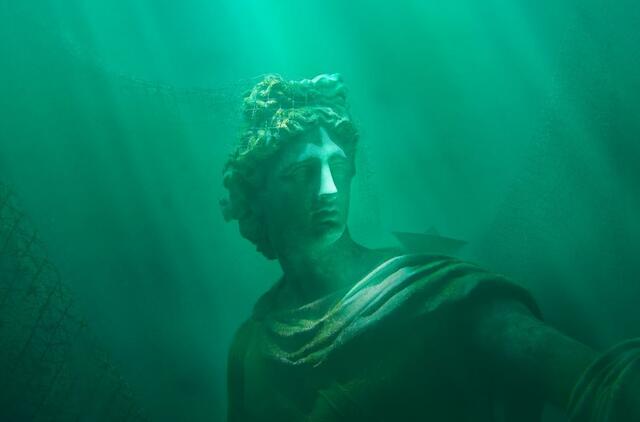 Apoloną gaubia tamsa, į plaukus veliasi vandenyje siūruojantys tinklai, bet jo veidas ramus, tvieskiamas vandenį perveriančios šviesos.