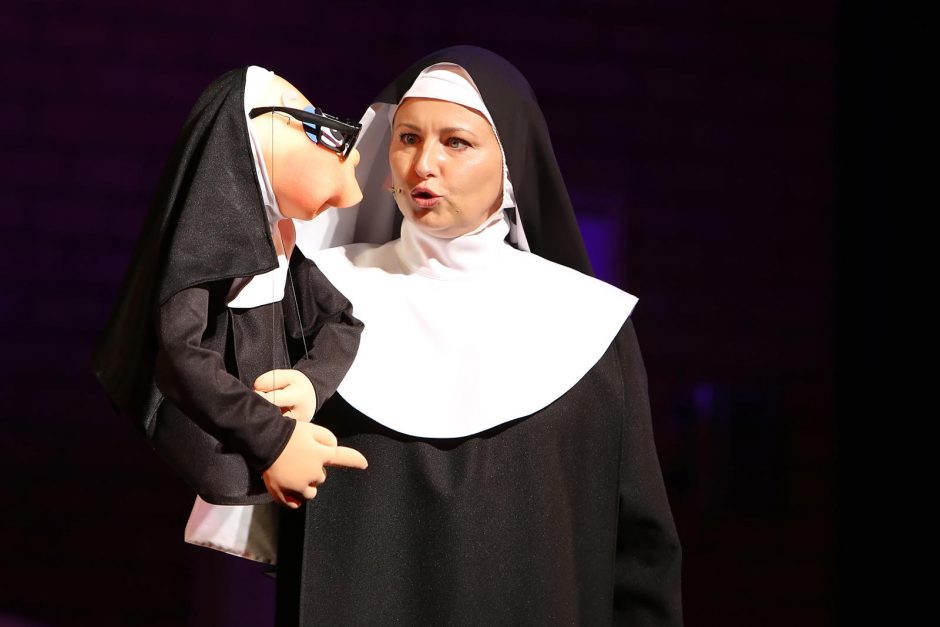 „Šounuolynas" – tai komiška vienuolių gyvenimo istorija, priverčianti plačiai nusišypsoti. Hobokeno mažųjų seserų ordino moterų vienuolyne įvyksta nelaimė – nuo Dievo tarnaitės sesers Julijos išvirtos svogūnienės apsinuodija ir miršta beveik visos seserys. Negandos išvengusios vienuolės nusprendžia surengti paramos šou ir surinkti lėšų mirusiųjų vienuolių laidotuvėms. „Šounuolyno" talentų šou, vienuolių pasirodymai, muzika ir komiškos interliudijos tiesiog pulsuoja linksmybėmis ir didžiuliu noru priversti Jus kvatotis! P.s. „Šounuolyno" veiksmas interaktyvus. Jus irgi gali pakviesti į sceną!