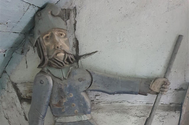„Užlipęs į bažnyčios antrąjį aukštą, kuriuose yra paveldosauginiai Liepojoje dar 1860 m. meistro Karlo Hermanno gaminti vargonai, pastebėjau laiptus į dar vieną - varpinės - aukštą. Užlipęs radau tai, ko nesitikėjau. Atremti stovėjo du mediniai žalnieriai. Kūnai - plokšti, o galvos - bareljefinės. Įdomu tai, kad formaliai jie turėtų būti Romos imperijos kariai, tačiau čia pavaizduoti kaip iš XIX ar XX a.: vienoje rankoje laiko kardą, kitoje - šautuvą. Iš fasadinės pusės lėlės nudažytos spalvotais dažais, o kitoje - įmantrus mechanizmas: kaištukai, kabliukai, virvutės... Mat tie žalnieriai turėjo judėti, kilnoti rankas, kojas“, - įspūdžiais dalijosi Kultūros paveldo departamento (KPD) Klaipėdos teritorinio skyriaus vyriausiasis valstybinis inspektorius L. Kavaliauskas.