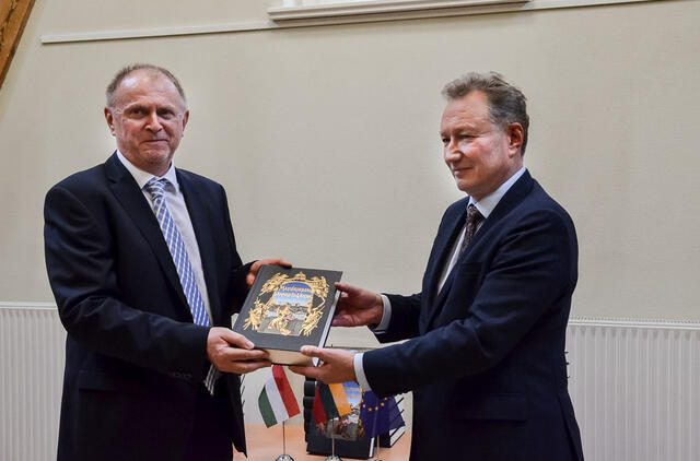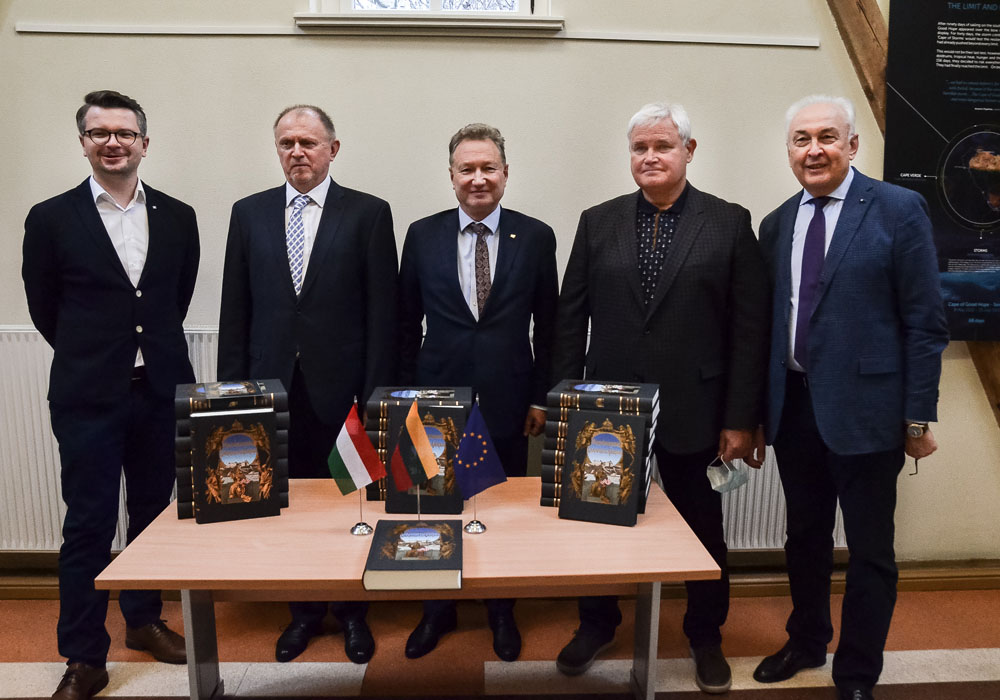 Unikalų 25 tomų Vengrijos miestų ir regionų istorijos rinkinį, išleistą šios šalies tūkstantmečio proga, 1896-aisiais, Klaipėdos universitetui įteikęs nepaprastasis ir įgaliotasis ambasadorius Lietuvoje p. Gaboras Dichazi pabrėžė dvišalio valstybių bendradarbiavimo ne vien ekonomikos, bet ir kultūros, švietimo bei meno srityse svarbą.