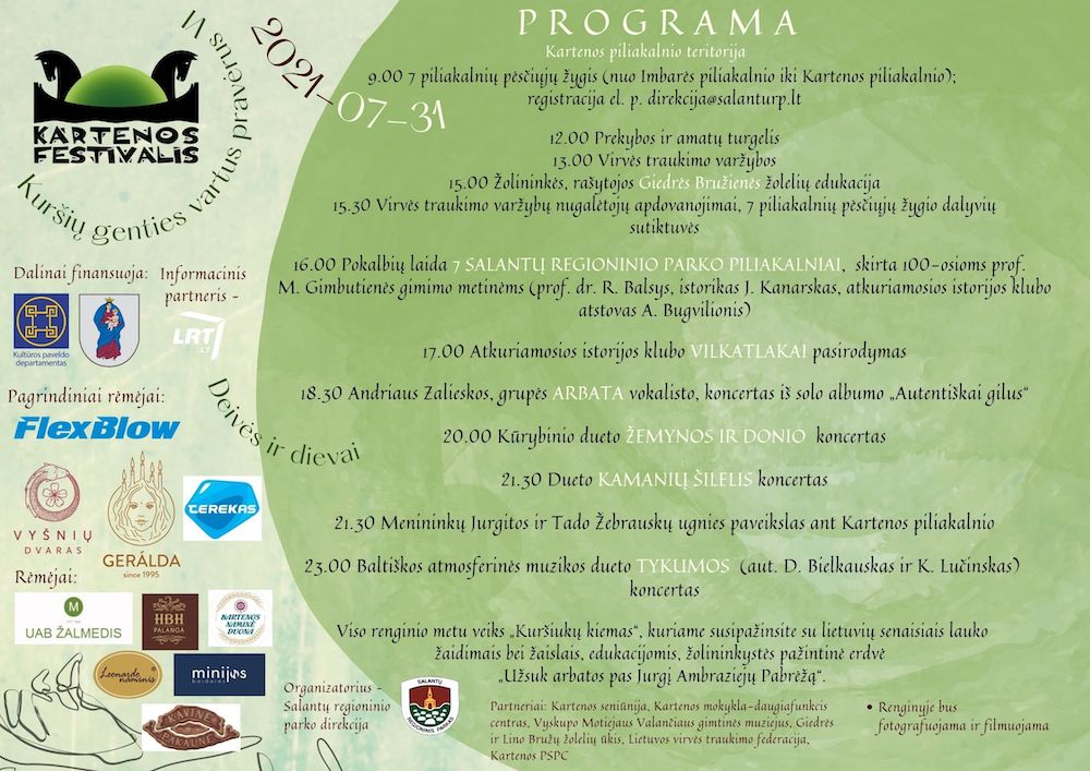 Visus, kurie negalės atvykti į Kartenos festivalį „Kuršių genties vartus pravėrus VI“, organizatoriai (Salantų regioninio parko direkcija) ragina nuo 20 val. stebėti renginio tiesioginę transliaciją Salantų regioninio parko direkcijos „Facebook“ paskyroje.