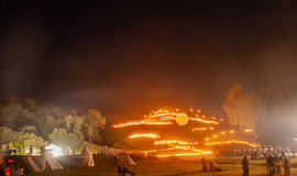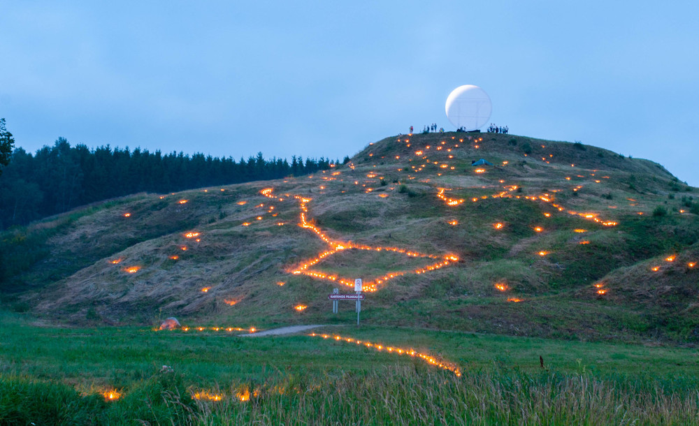 Šįkart ant Kartenos piliakalnio pamatysime „Deivių ir dievų“ ugnies paveikslą, kuriame atpažinsite senojo tikėjimo požeminę, žemės ir dangaus sferas. Pirmą kartą Kartenos piliakalnio ugnies paveikslų kūrėjai Jurgita ir Tadas Žebrauskai siekia tiesioginio ryšio su žiūrovu ir kviečia įžvelgti bei atpažinti jų kūrinyje ne tik archajiškos kultūros nuotrupas, bet ir save.