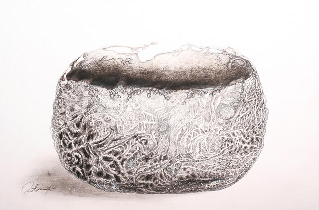 Pasaulio gyvybinių galių telktį perteikia kūrinijos pradus simbolizuojantys dubenys. Ši indo metafora primena anuomet buvusius apeiginius kaušus, kuriuos galima prilyginti žmogaus galvos, minčių, idėjų sričiai. Juk pasaulio gyvybinių galių pradai būdavo pasitelkiami sąmoningai kaip saitai su žmonių vidinių gyvybinių galių versmėmis.