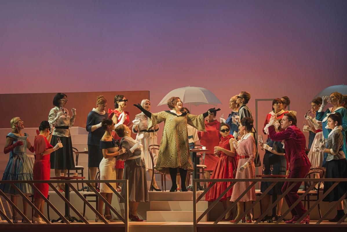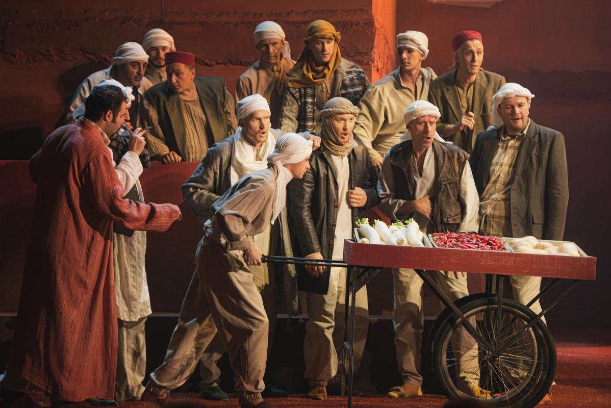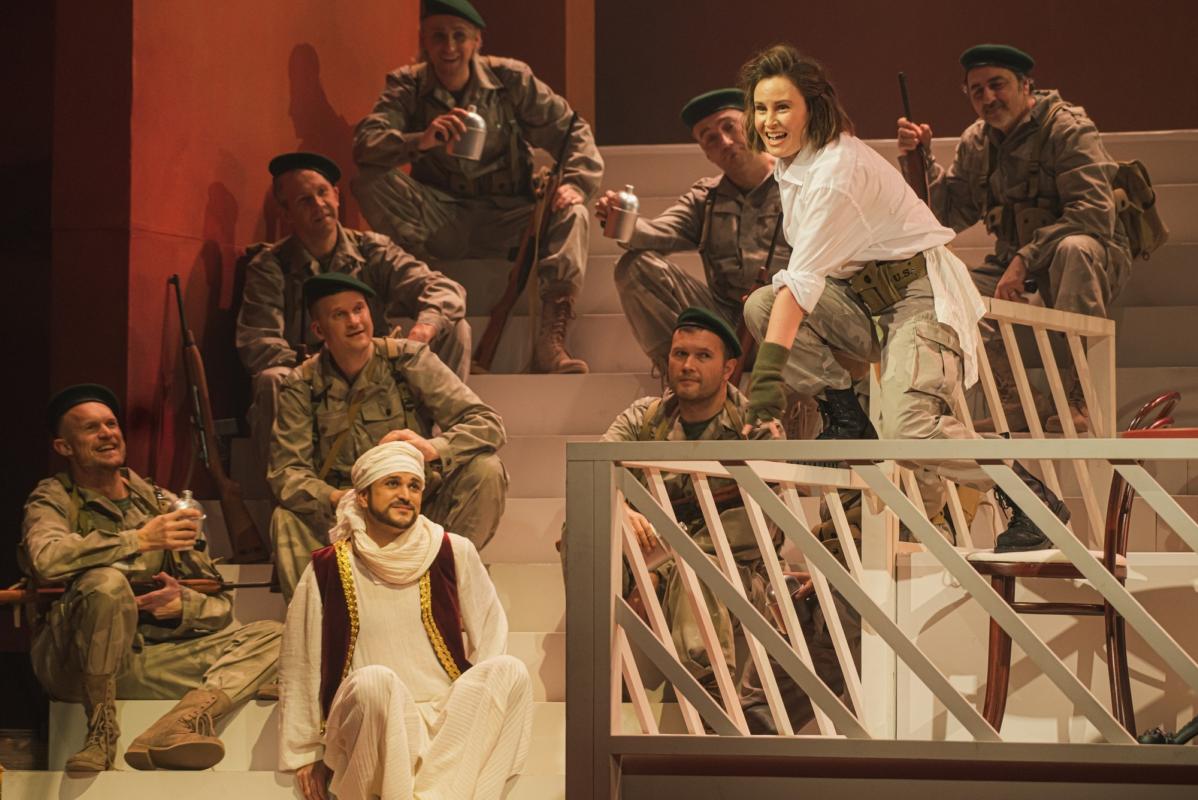Du operos veiksmai vienas nuo kito skiriasi kaip diena ir naktis: Alžyre šviečia kepinanti saulė, oro temperatūra tokia aukšta, kad prancūzės alpsta nuo karščio, o Prancūzijos kariai ir vietiniai gyventojai nespėja valytis prakaito nuo savo veidų. Na, o antras veiksmas gerokai rafinuotesnis, suvaržytas, niūrokas ir šaltas. Tai atsispindi ir scenografijoje, ir kostiumuose.