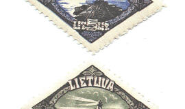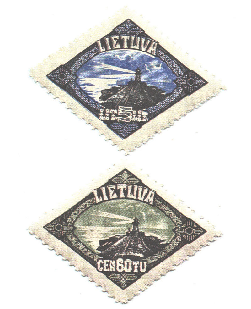 TARPUKARIS. Lietuviški 1923 m. pašto ženklai su Baltuoju švyturiu.