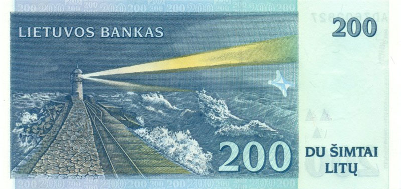 Nors eurą Lietuva įsivedė 2015 m. pradžioje, daugelis dar atsimena 1997 m. laidos 200 litų kupiūrą, kurios averse pavaizduotas vienas žymiausių Mažosios Lietuvos veikėjų, filosofas, rašytojas Vydūnas, o reverse - šiaurinis molas su ilgą spindulio šuorą metančiu Baltuoju švyturiu.