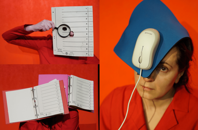 Šiame objektų spektaklyje pasakojimą konstruoja kaukės, pagamintos iš su biuro kasdienybe susijusių objektų: segtuvų, kavos puodelių, cukraus pakelių, žirklių, lipnios juostos ir kt. Tad aktoriams tenka nemenkas iššūkis mėginant kurti savo personažus, veikti scenoje ir rasti viena kitą didžiąją laiko dalį nieko nematant (choreografė - Sigita Mikalauskaitė).