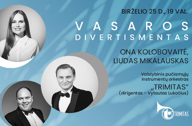 Ar gali būti geresnė proga apsilankyti koncerte, nei šiltą ir jaukų vasaros vakarą pajūryje? Vis labiau džiuginant saulėtiems orams, Valstybinis pučiamųjų instrumentų orkestras „Trimitas“ kartu su visiems puikiai pažįstamais veidais – solistais Ona Kolobovaite bei Liudu Mikalausku – birželio 25 d. (penktadienį), 19 val. Palangos koncertų salėje, klausytojus pradžiugins melodinga ir šiluma dvelkiančia lietuviškų dainų programa „Vasaros divertismentas“.
