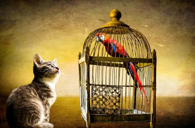 Jam pasidarė taip gera, kad iš džiaugsmo pradėjo čiulbėti. Pro šalį bėganti katė išgirdo čiulbėjimą ir nusprendė išsiaiškinti, iš kur jis sklinda.