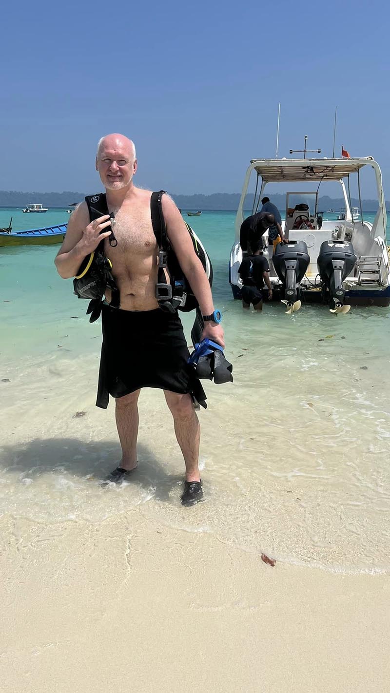 Pasak jo, paplūdimių kultūra Andamanuose visai kitokia nei pas mus. Ten niekas neguli ant smėlio ir nesidegina.