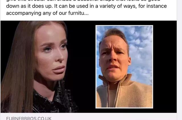 Paspaudus įrašo nuorodą atsidaro baldų įmonės feisbuko puslapis.