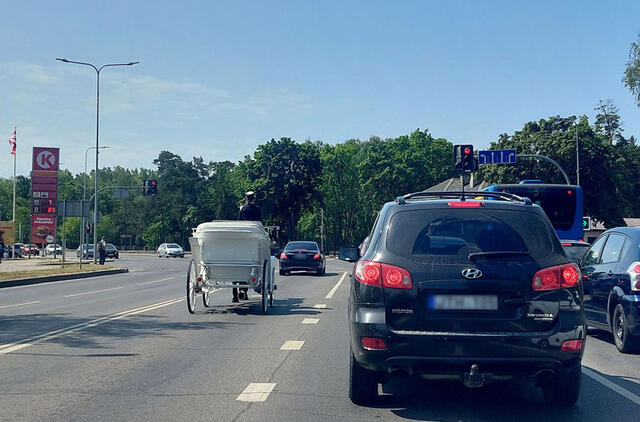 O kam viso to reikia, jeigu galima padaryti paprasčiau. Žinia, dviračio išradinėti nereikia. Juk seniau dvarininkai vieni pas kitus važiuodavo arkliais kinkytomis karietomis. Puikiausiai galime grįžti prie arklių. Nušausime du zuikius: tada tikrai Klaipėda išgarsėtų, ko gero, net pasaulyje. Pavieniai žaliojo kurso entuziastai jau rodo iniciatyvą (žr. nuotr.).