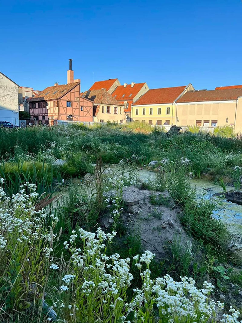 Puikioje senamiesčio vietoje lietus prilijo tvenkinuką, paukščiai ir vėjas pasėjo sėklas ir sužaliavo naujausias mados tendencijas atliepiantys želdynai.