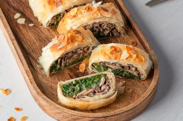 Maisto technologai kviečia pasigaminti unikalų FILO tešlos pyragą su grybais ir špinatais.
