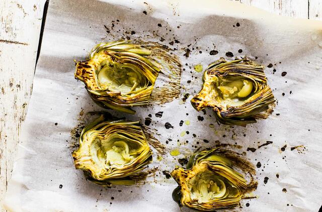 Orkaitėje kepami artišokai įgauna stipraus riešutinio skonio. O skaniausia ruošiant šią gėrybę prieš kepant paprasčiausiai pašlakstyti alyvuogių aliejumi.
