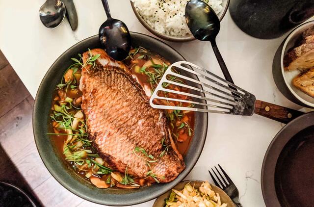 Plonesni gabalėliai iškepti gali per 10 minučių, o storesniems prireiks ir visų 20-ies. Visgi, ar žuvis iškepusi, lengviausia patikrinti šakute. Ją geriausia įbesti į storiausią žuvies gabalėlio vietą – jeigu žuvis nėra permatoma ir lengvai byra, vadinasi, ji iškepusi“, – sako V. Juodkazienė ir dalijasi net trimis nepaprasto skonio receptais su vilkžuve, kuriuos įkvėpė skirtingi pasaulio kraštai.