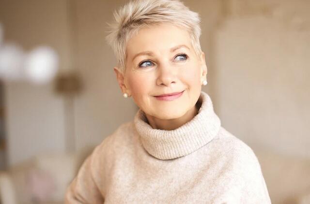 Kelnės gali būti patogios, bet elegantiškos, o vietoj raudono lūpdažio bus įdomūs auskarai ir apyrankė.