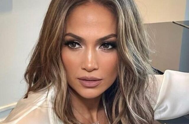 Prie įrašo buvo pridėtas kadras, kuriame Lopez vilki stringus ir baltą palaidinę.