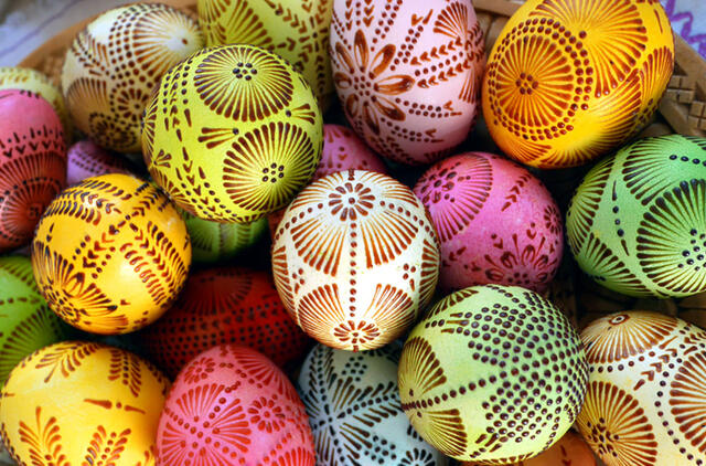 Pirmiausia valgomi kiaušiniai. Vieni su kitais jais susidaužia. Stipriausias nesudužęs kiaušinis paliekamas nesuvalgytas. Šį kiaušinį naudodavo kiaušinių ridenimo varžytuvėse – daužynėse. Buvo tikima, kad tas kuris daugiausia kiaušinių laimės – tas ir laimės daugiausia turės šiais metais.