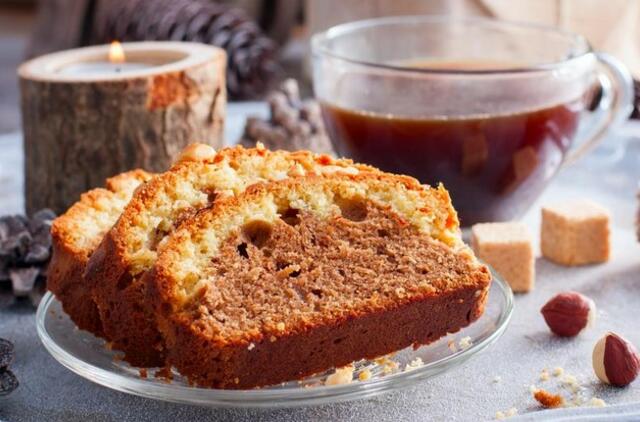 Ištepkite kepimo indą riebalais ir supilkite į jį tešlą. Pyragą kepkite 40 minučių 180° temperatūroje. Dantų krapštuku patikrinkite, ar pyragas paruoštas. Jei pyrago viršus rudas, o vidus drėgnas, uždenkite jį folija.