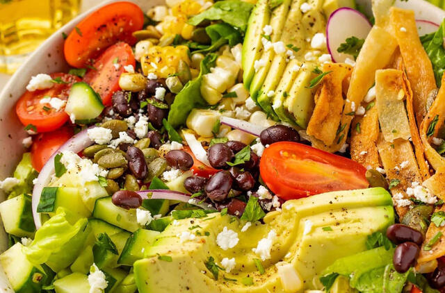 Meksikietiškos salotos su kalendros ir laimo padažu