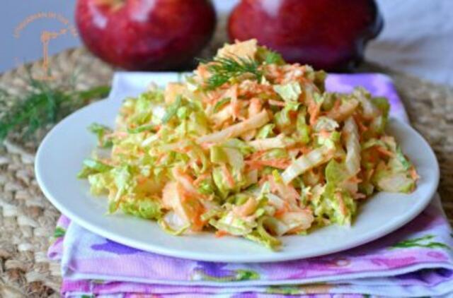 Kopūstą supjaustome šiaudeliais. Morką nulupame ir sutarkuojame smulkia tarka.
