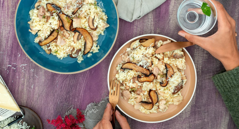 Maisto technologai kviečia pasigaminti unikalų rizotą su vištiena, „Portobello“ grybais ir čiobreliais.
