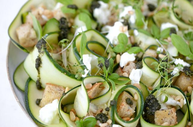 Tereiks mėgstamų lapinių salotų, pomidorų, aguročio, svogūnų laiškų, saulėje džiovintų pomidorų, mocarelos. Visi ingredientai yra susmulkinami, sumaišomi dideliame dubenyje. Tokias salotas galima pagardinti kokybiško alyvuogių aliejaus ir balzaminio acto padažu“, – pasakoja J. Sabaitienė.