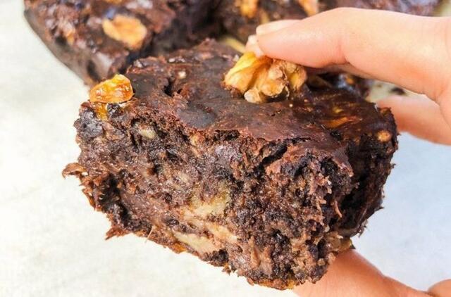 Masę pilti į kepimo popieriumi išklotą skardą, viršų papildomai pabarstyti graikiniais riešutais ir kepiau 180C 45min, prieš pjaustant ir valgant leisti šiek tiek atvėsti.
